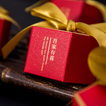 四万公里 喜糖盒子 喜字婚庆装饰中式婚礼糖果盒糖袋结婚礼盒生日满月百天派对盒 小号50个装 SWL3008